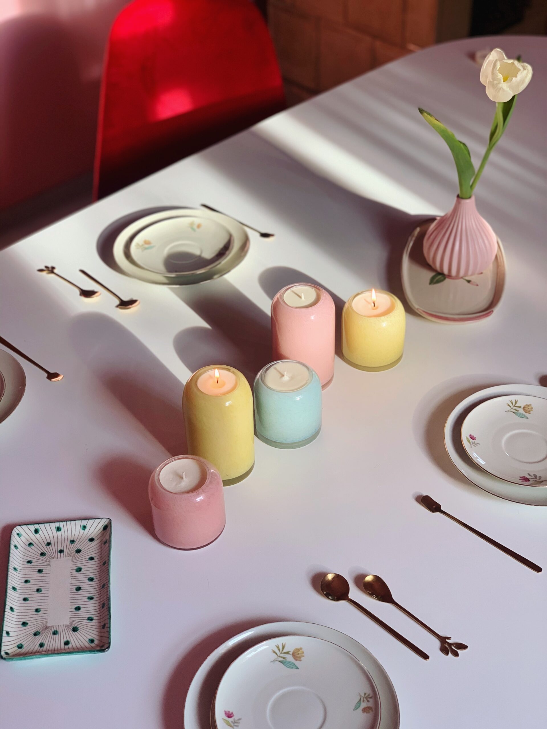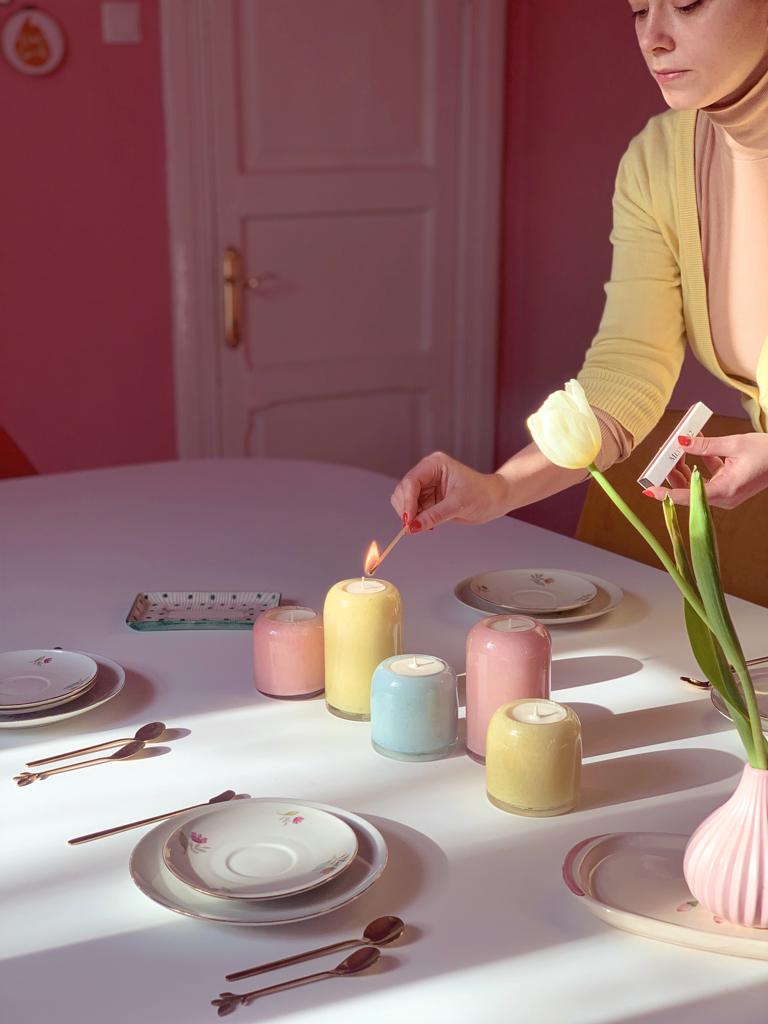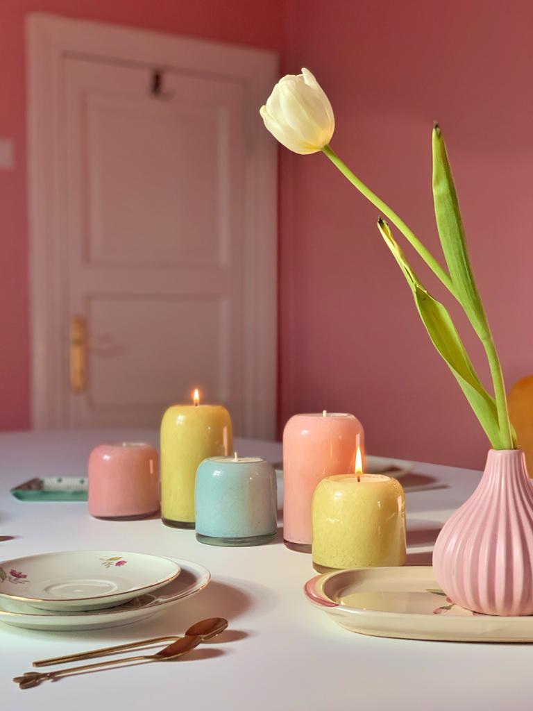 Te încurajăm să te răsfeți cu mai multe combinații de arome, pe care să le lași să-ți umple casa în diverse momente ale zilei. Sau dacă tot vor fi trei zile de Paște, de ce să nu aprinzi câte o lumânare diferită în fiecare zi? Îți recomandăm decorurile cu lumânări stâlp Allora în nuanțe pastelate, care în asociere de 2, 3 sau 5 lumânări creează ansambluri sofisticate.