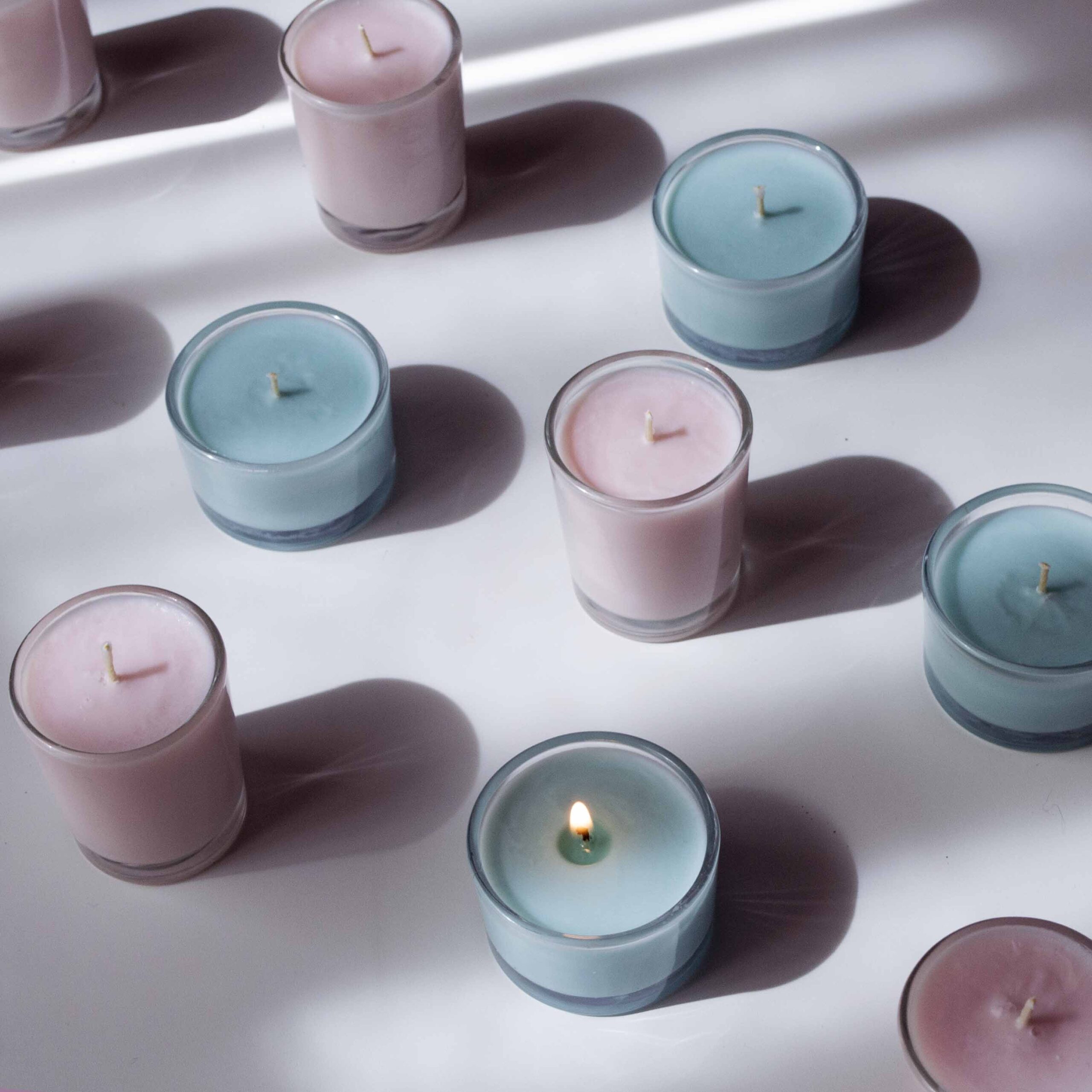 - mini-paharele colorate au 80 grame de ceară și sunt disponibile în variantele corai, mov, roz și turcoaz.