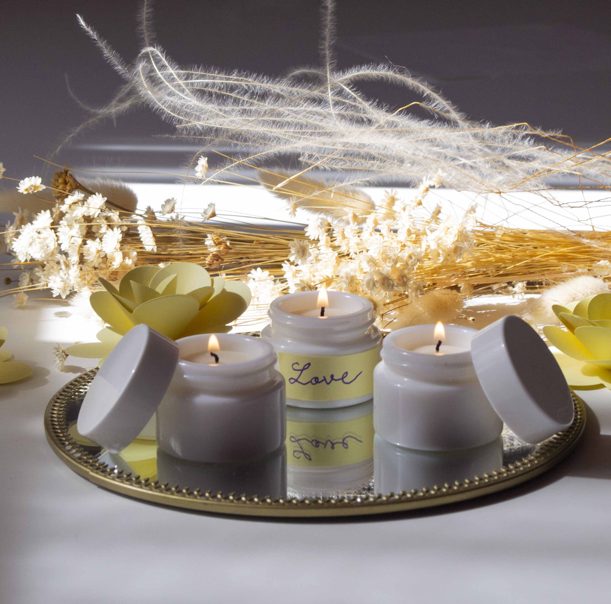 - avem 2 dimensiuni de vase transparente – cu 30 sau 40 g de ceară.