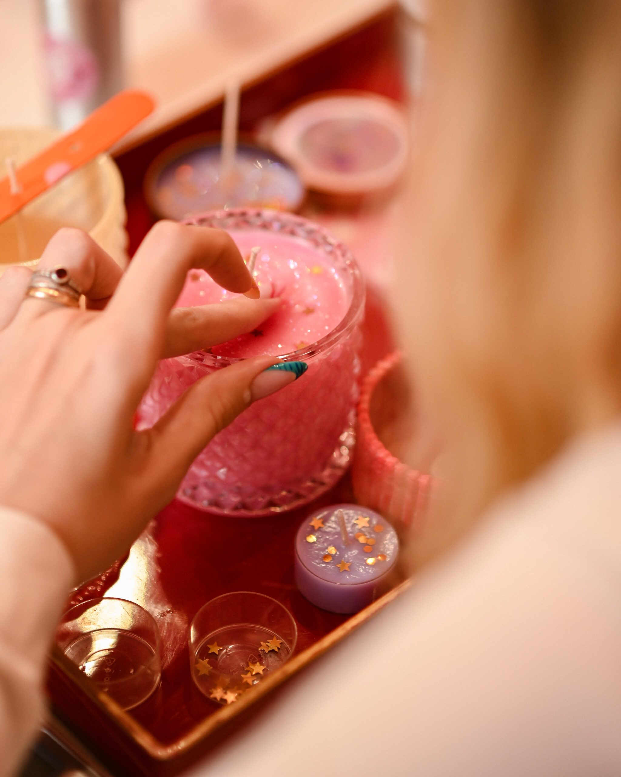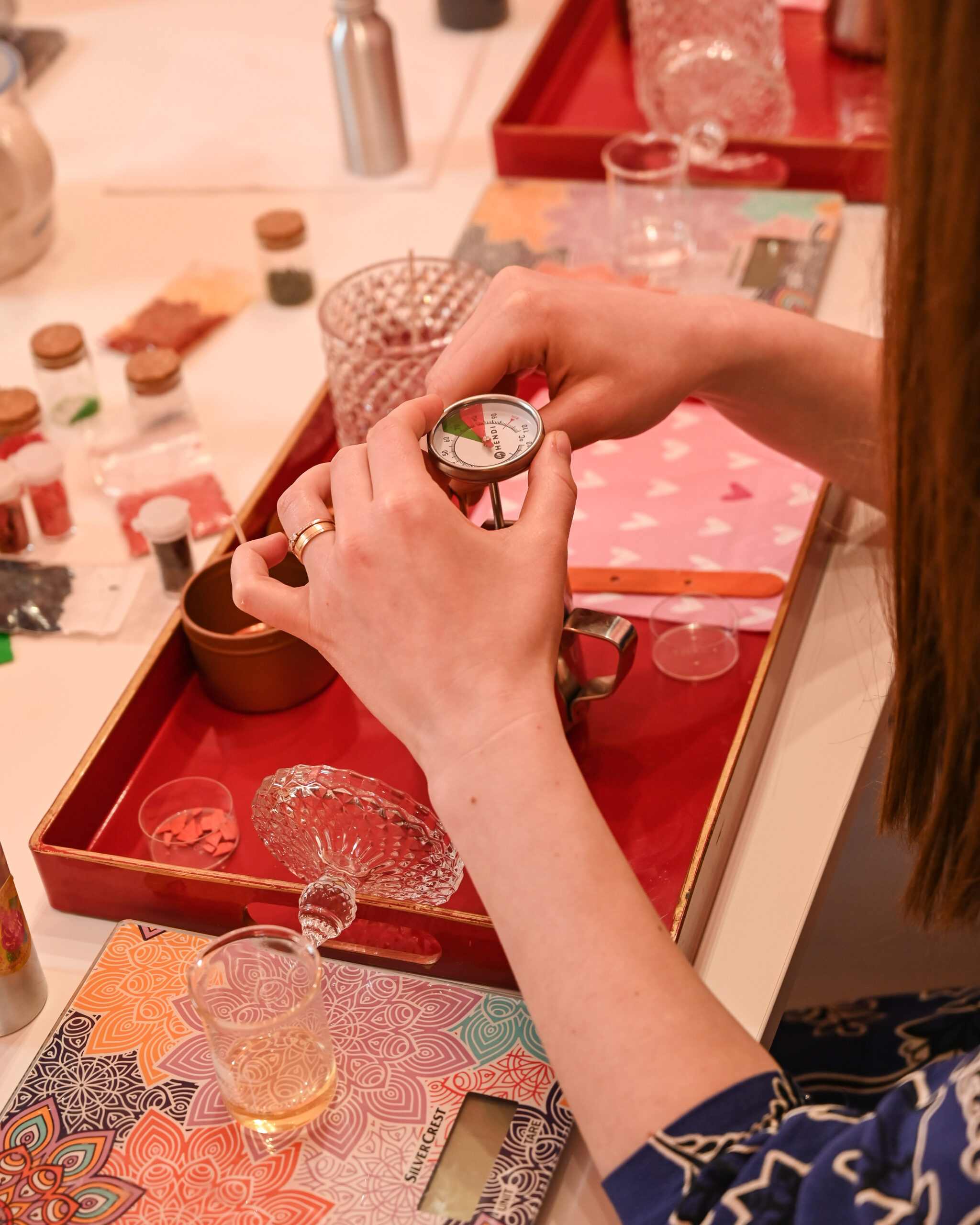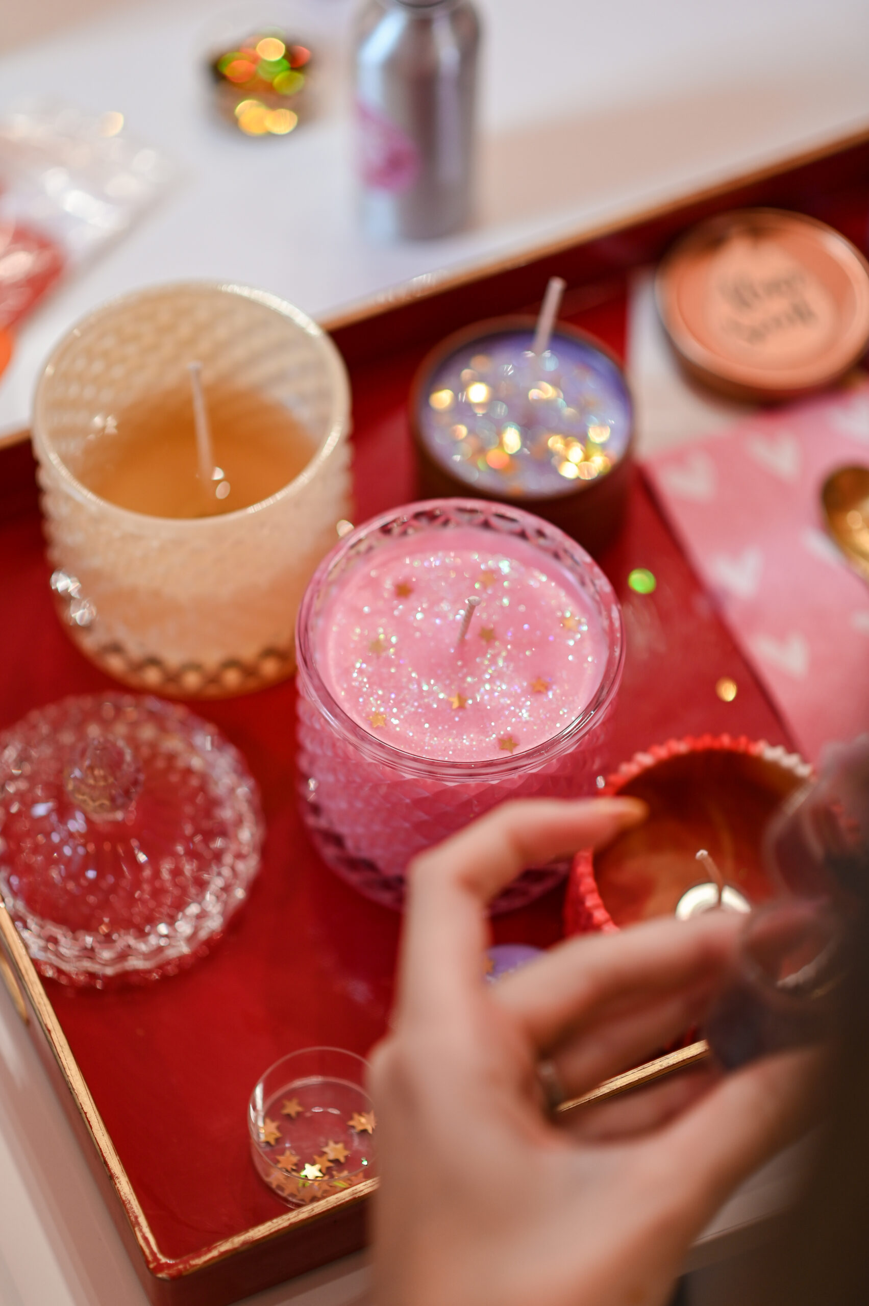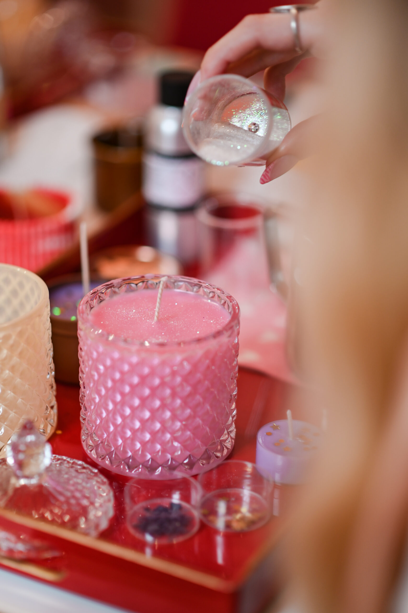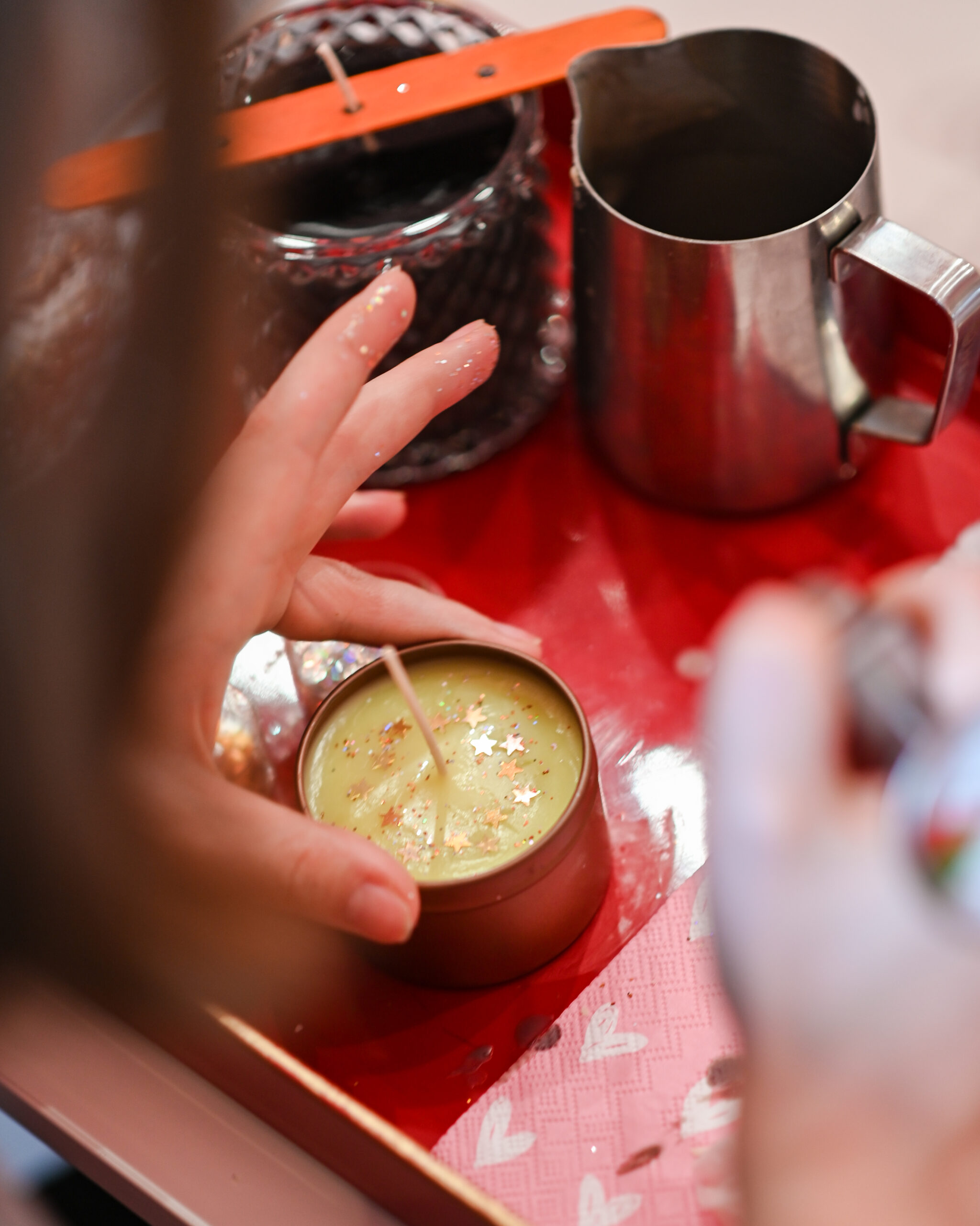 Te vei putea juca cu vopseaua pentru ceară naturală și sclipici.