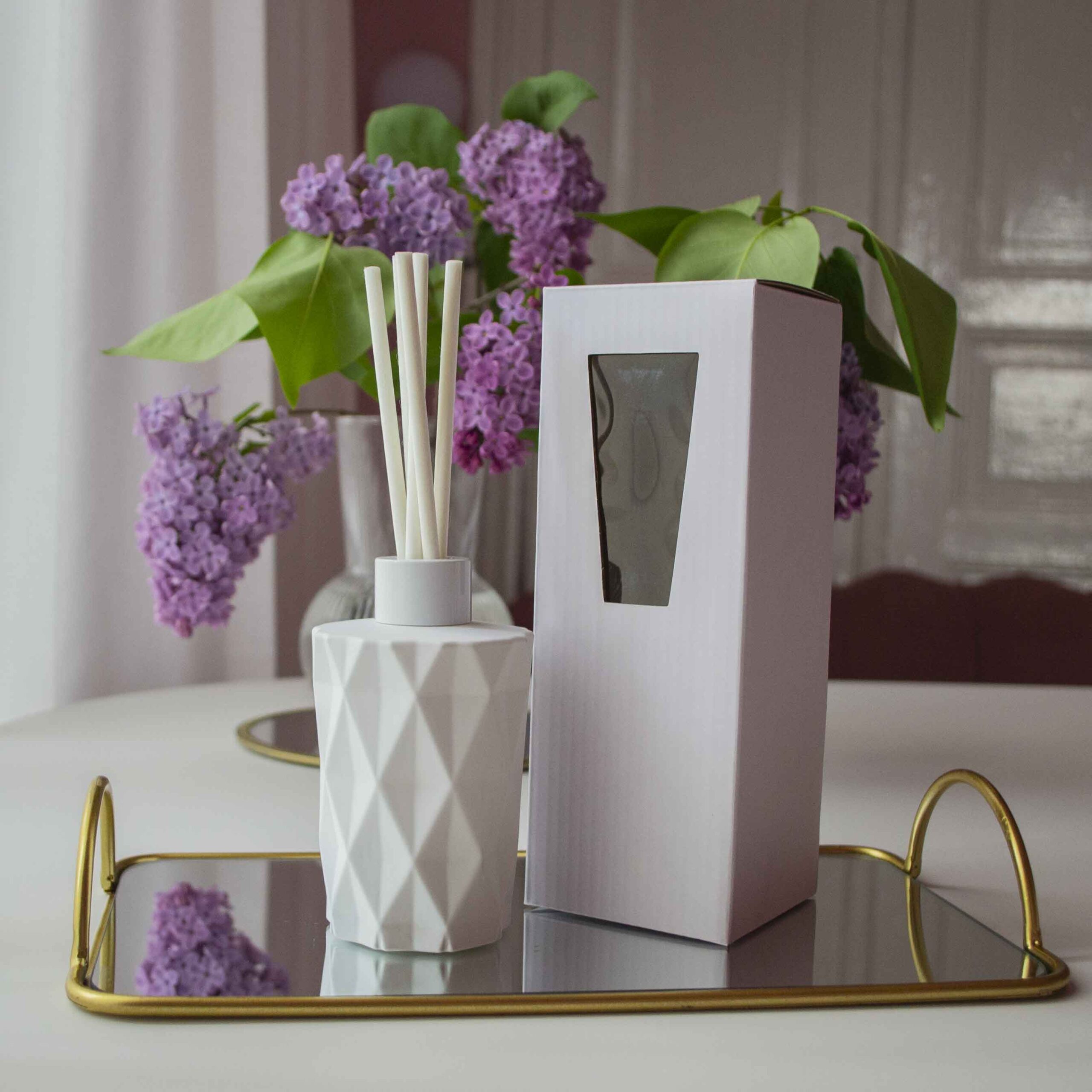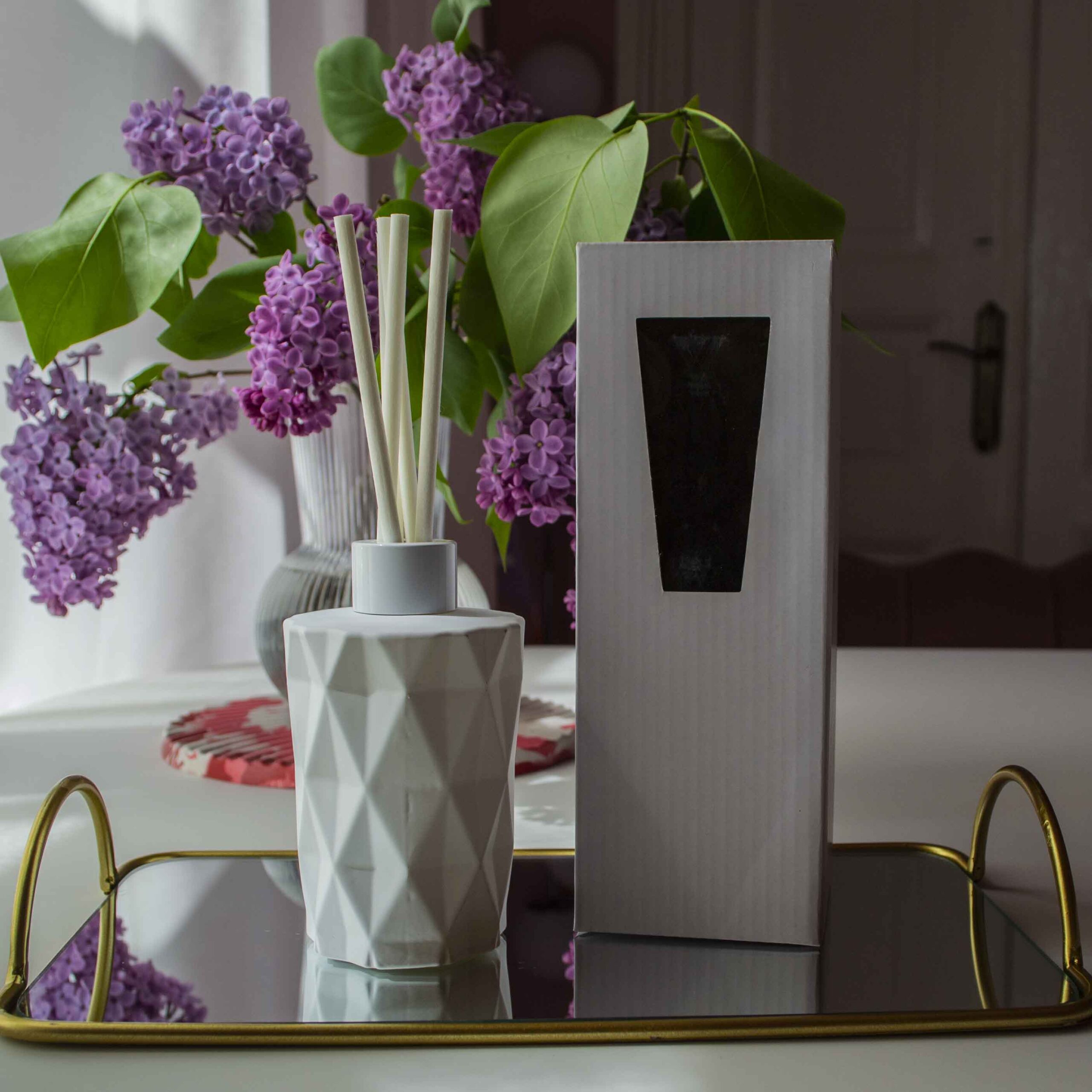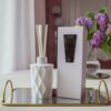 Acest difuzor pentru parfum îți va face casa mai frumoasă atât prin parfumul pe care-l împrăștie, cât și prin designul geometric și elegant. Fiecare difuzor este amestecat și umplut manual în atelierul Flair Scent.