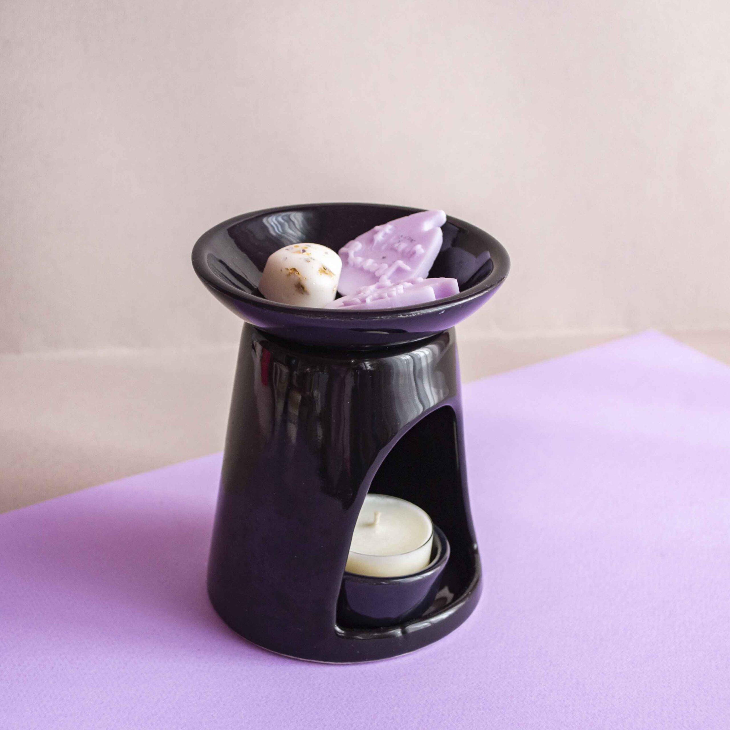 Lampă de aromaterapie din ceramică. Acest recipient poate fi folosit împreună cu medalioanele parfumate Flair Scent. La baza recipientului este necesară o lumânare de tip pastilă.