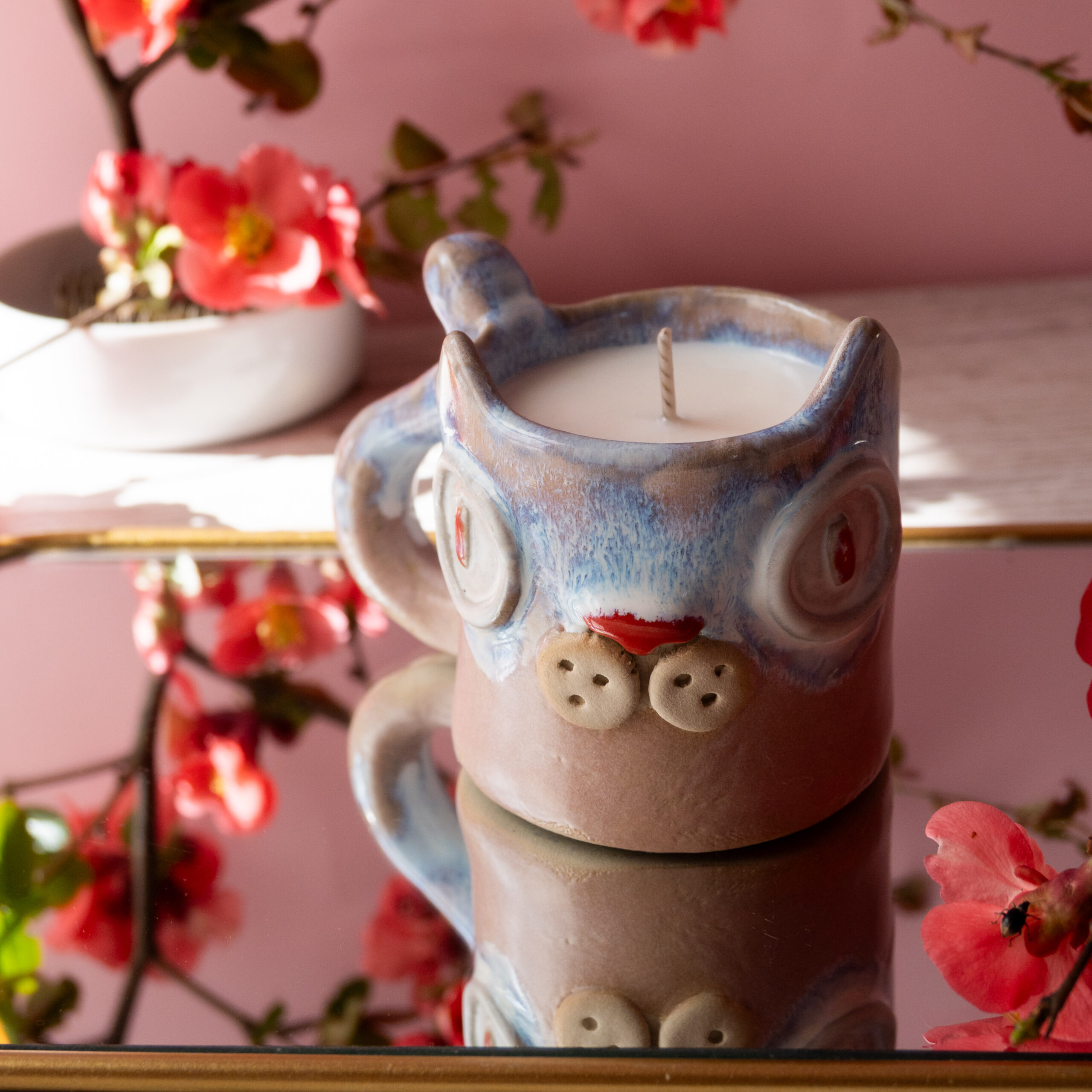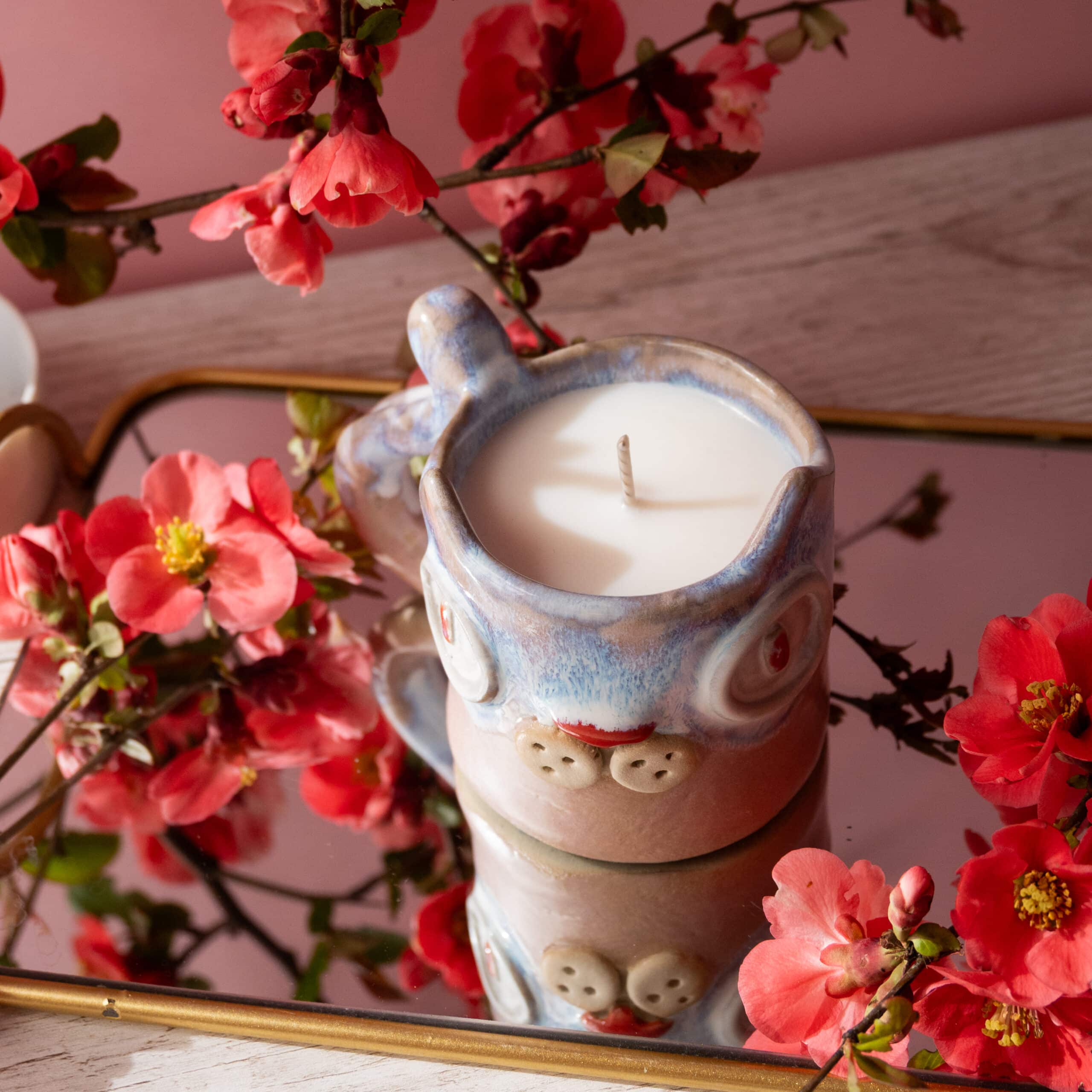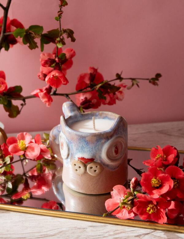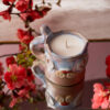 Lumânare parfumată din ceară 100% naturală de soia turnată manual în cană ceramică cu fitil de bumbac pentru o ardere curată și constantă