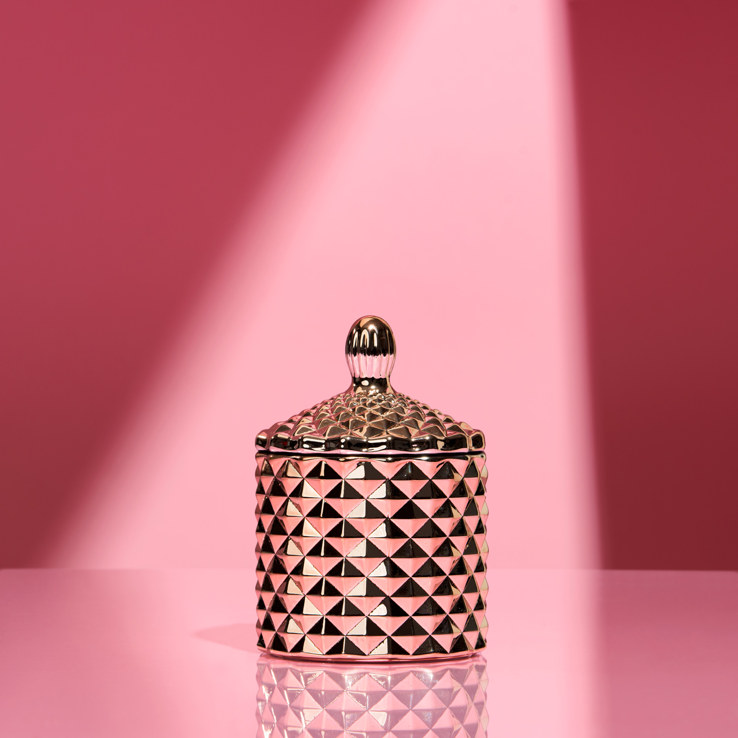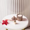 Recipientul face parte din colecția Bijuterii de casă, cu lumânări handmade în pahare și bomboniere de lux, de diferite forme și culori, pentru a aduce un plus de eleganță și parfum în casa ta. Bomboniera Boem are o textură geometrică în romburi, care dispersează lumina diafană a lumânării creând astfel un decor feeric și elegant în orice încăpere.