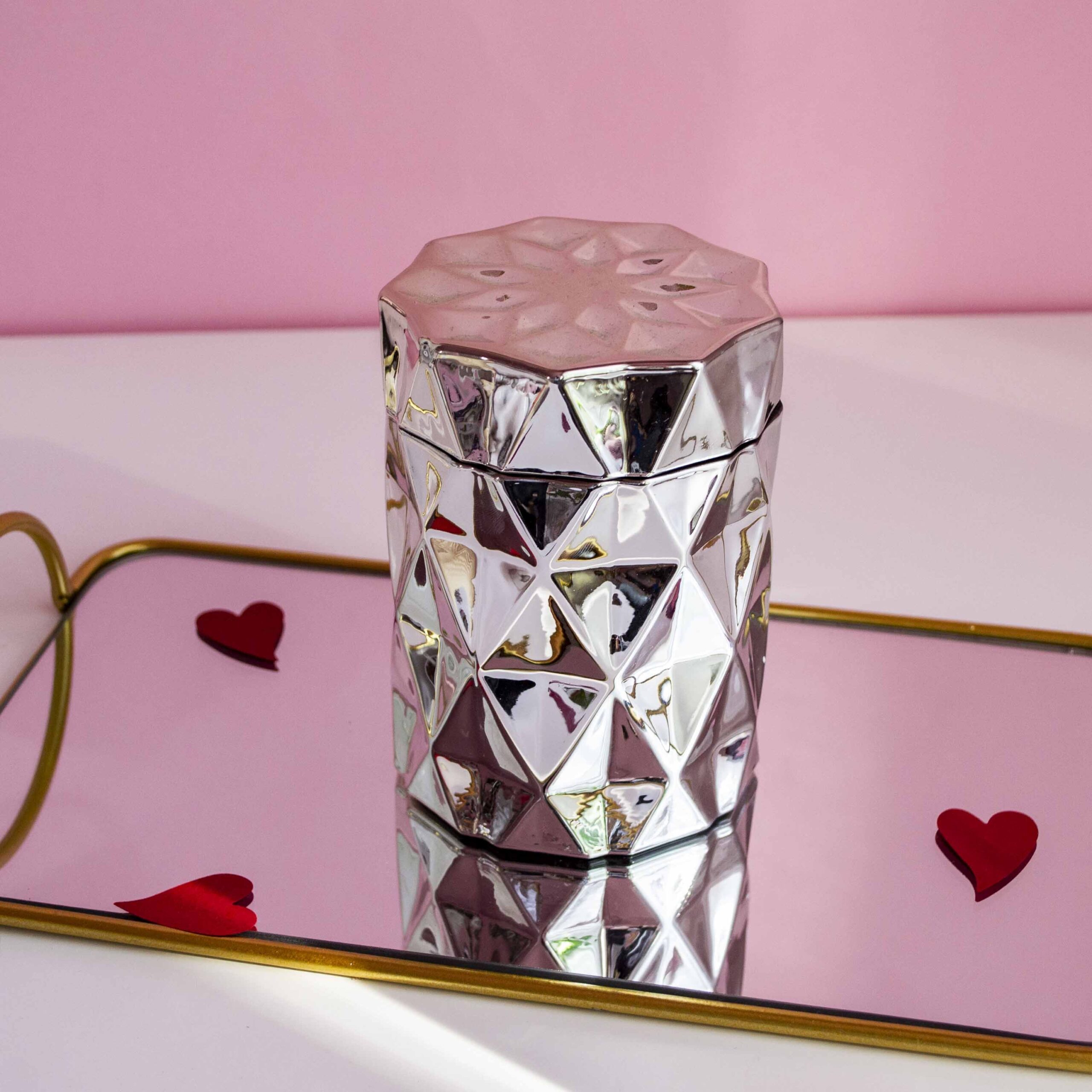 Recipientul face parte din colecția Bijuterii de casă, cu pahare și bomboniere de lux, de diferite forme și culori, pentru a aduce un plus de eleganță în casa ta. Aspectul modern al bombonierei Diamant, o face perfectă pentru a se încadra într-un decor minimalist, cu tonuri neutre de crem, bej, gri, alb si negru.