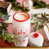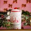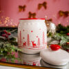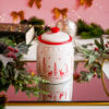 Lumânare parfumată din ceară de soia, handmade, turnată manual într-un vas ceramic cu model de iarnă.