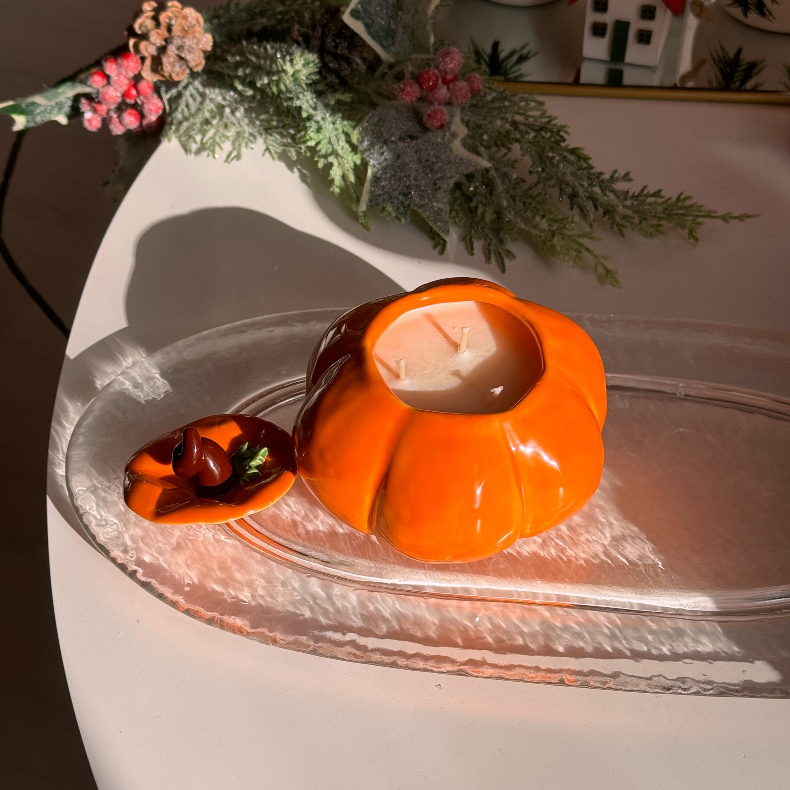 Lumânare parfumată din ceară de soia, handmade, turnată într-un vas ceramic lucrat manual de atelierul Dodo Pottery.