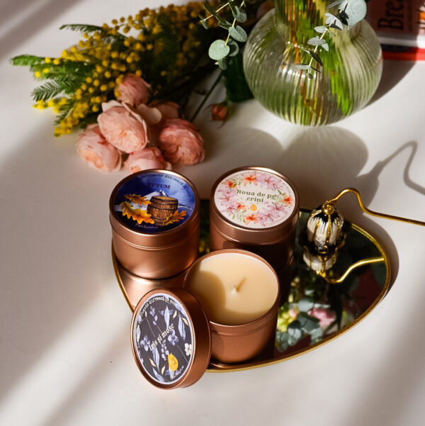 Lumânare parfumată din ceară naturală de soia, handmade în atelierul nostru din Iași.