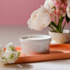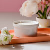Lumânare parfumată din ceară de soia, handmade, turnată manual într-un cupcake ceramic alb.