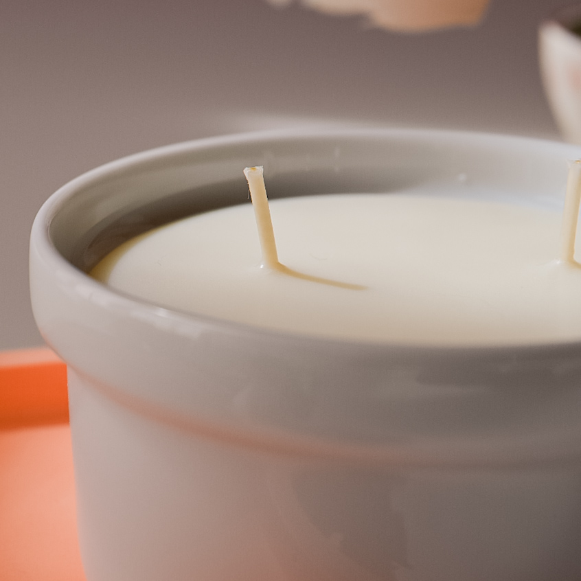 În atelierul Flair Scent folosim doar ceară din soia 100% naturală pentru lumânări, pe care o amestecăm cu uleiuri parfumate. Iar apoi o turnăm în straturi, pentru o distribuire egală a parfumului.