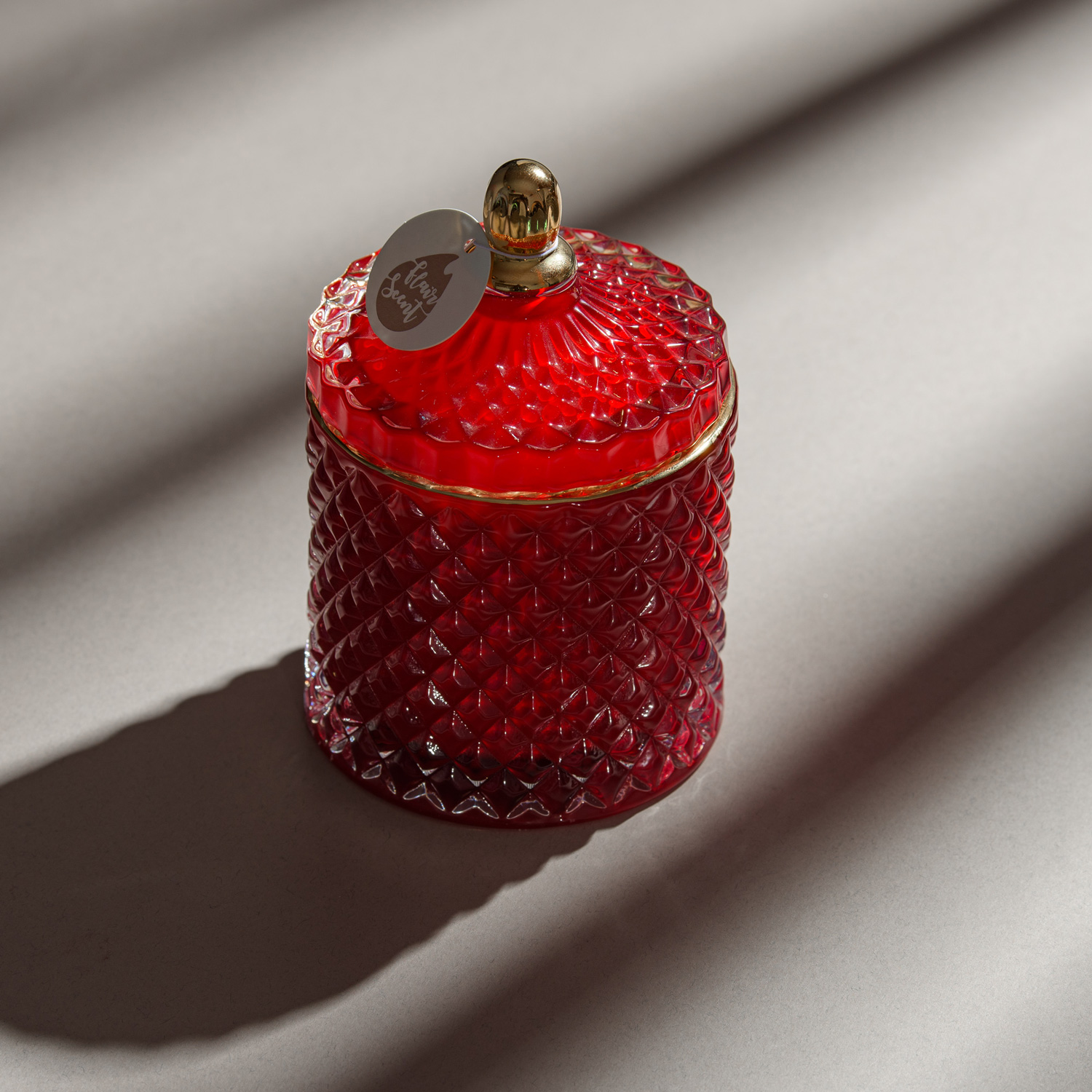 Recipientul face parte din colecția Bijuterii de casă, cu lumânări handmade în pahare și bomboniere de lux, de diferite forme și culori. Bomboniera Boem are o textură geometrică în romburi, ce dispersează lumina diafană a lumânării creând un decor feeric în orice încăpere.