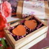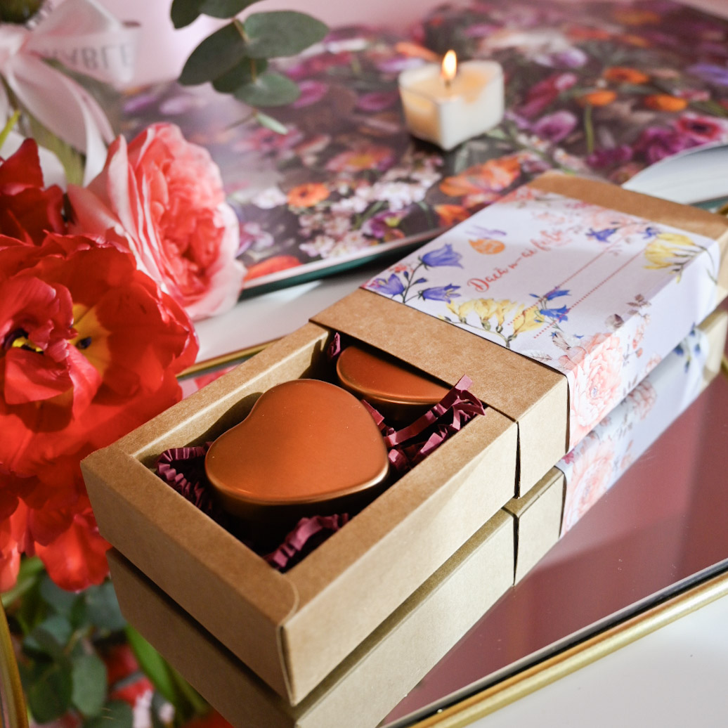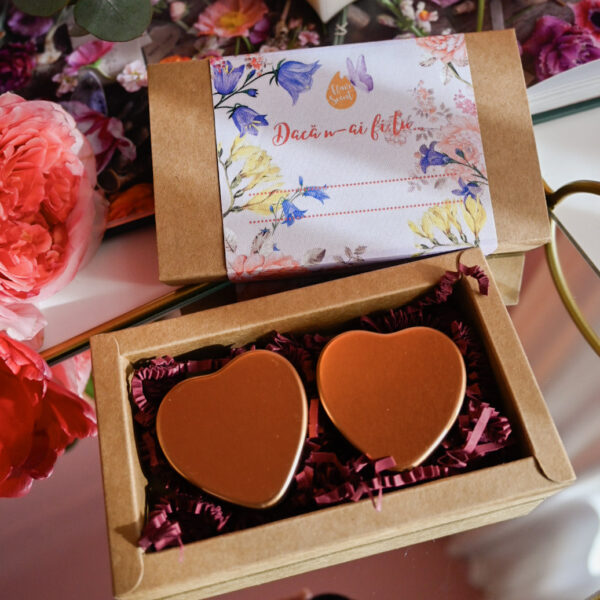 Setul conține două lumânări în cutie de călătorie inimioare.