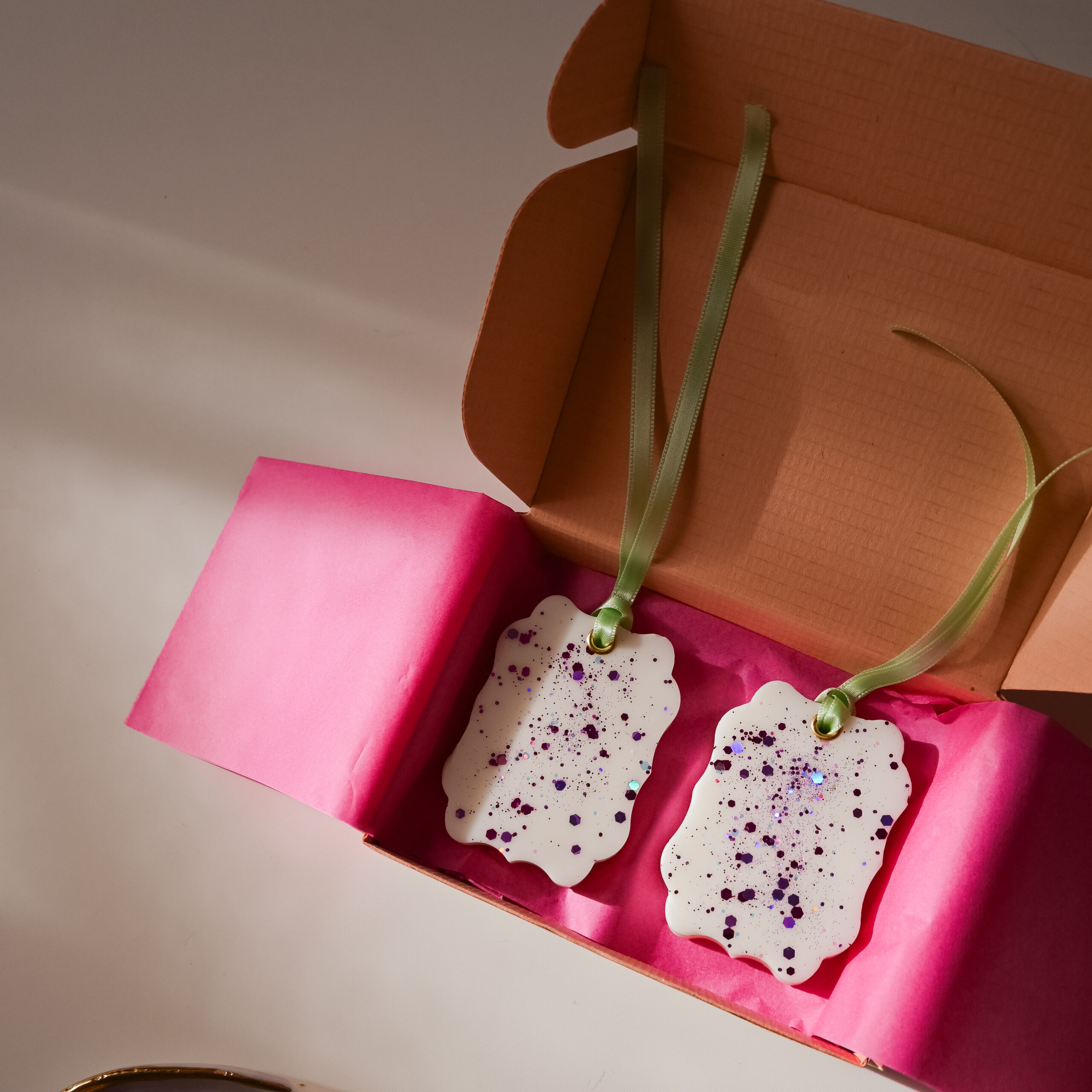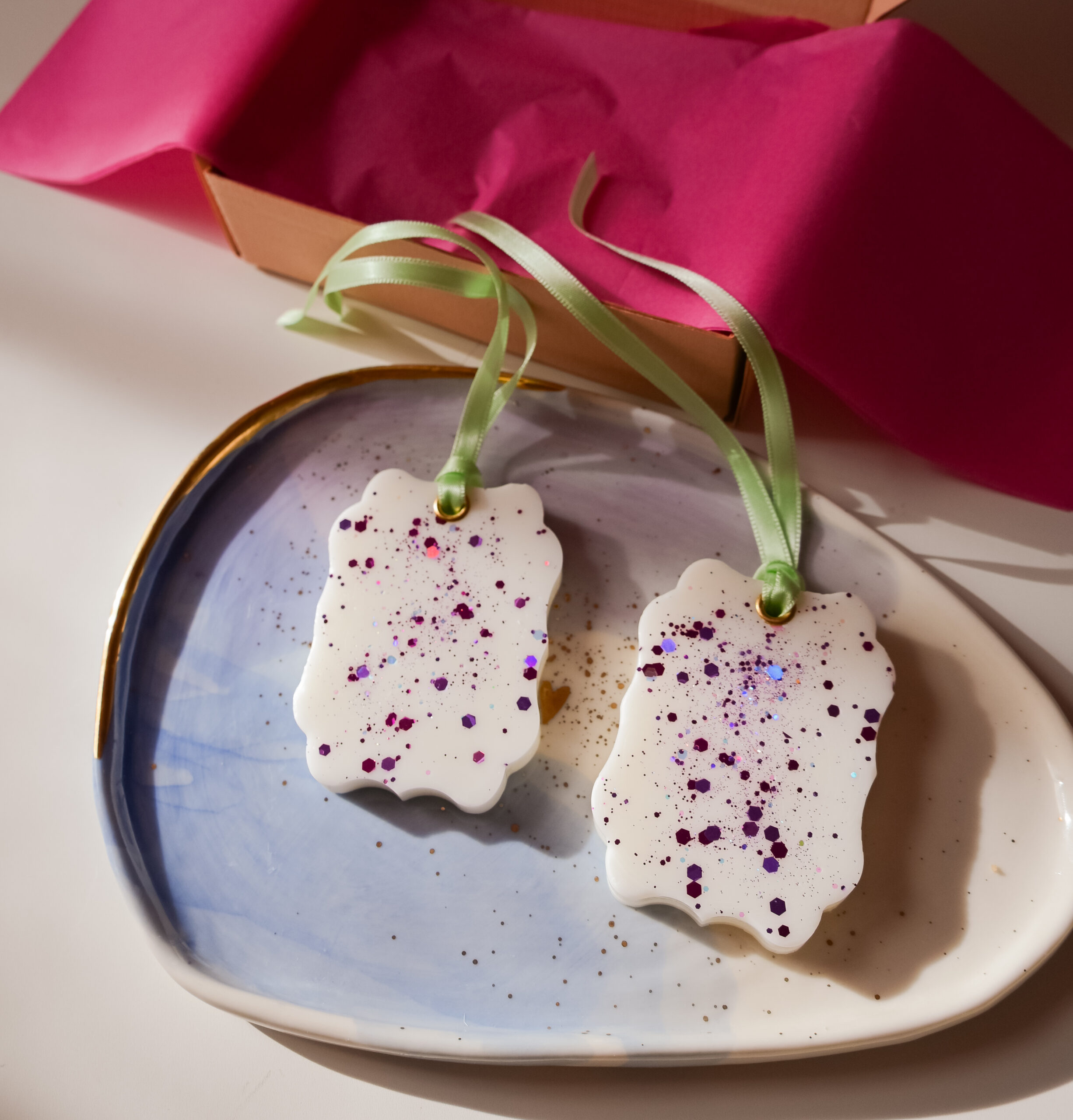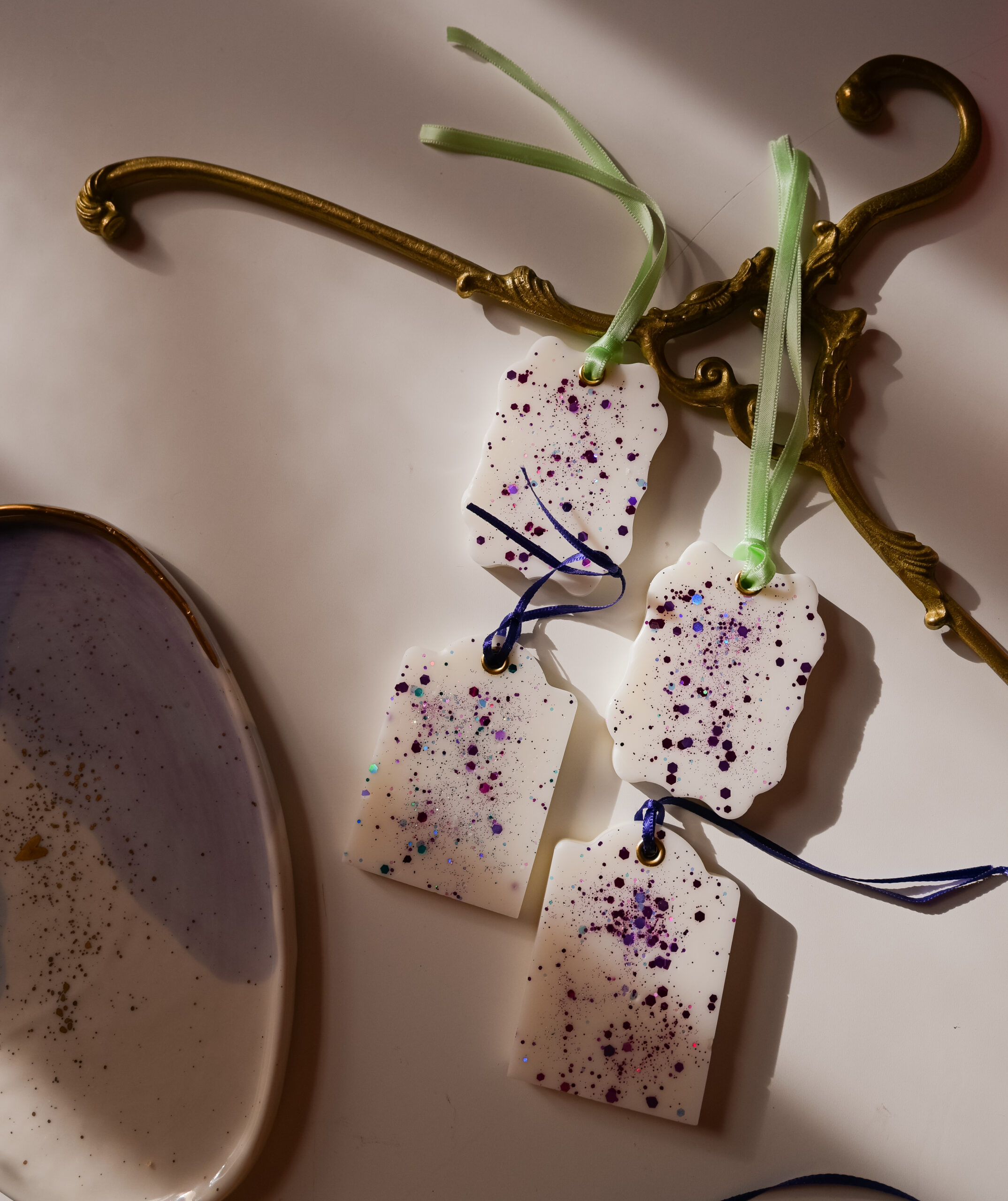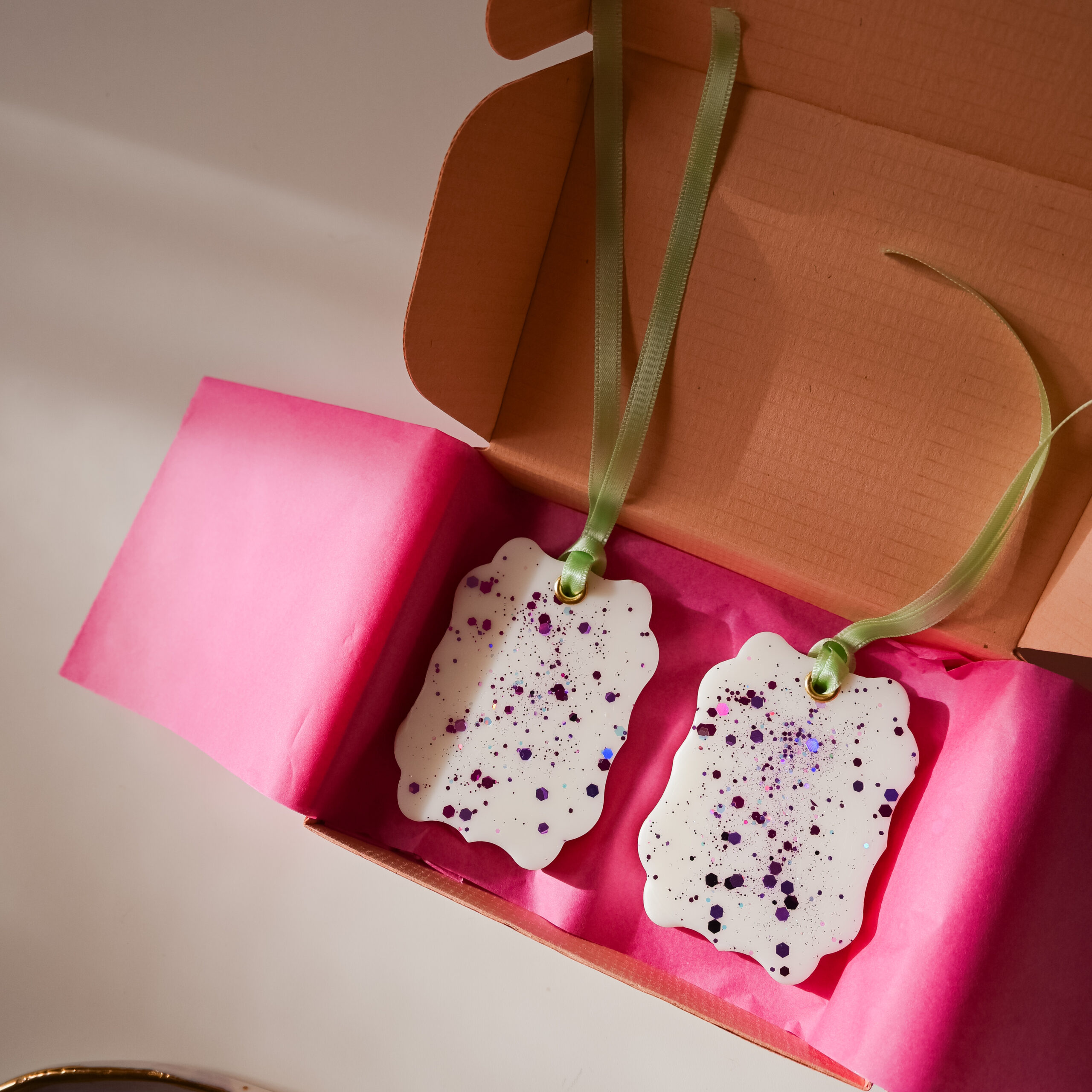 Odorizantele sunt turnate manual, decorate cu sclipici, parfumate și dotate cu o capsă și o panglică pentru a fi atârnate. Ceara odorizantelor este un amestec de ceară de soia și alte tipuri de ceară vegetală.